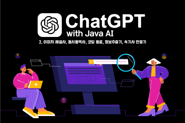 Java 환경에서 **ChatGPT의 고급 기능(API 연동, 이미지·텍스트 처리, 번역·요약 자동화)**을 실습하며, AI 기반 정보 추출, 코드 분석, 실시간 통역 및 텍스트 변환 기술을 구현할 수 있습니다.